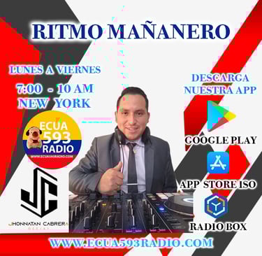 Sintoniza nuestro programa en vivo Ritmo Mañanero, conducción Jhonatan Cabrera de lunes a viernes de 7:00 a 10:00 AM hora de Nueva York
